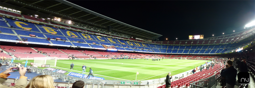 (La panorámica del Camp Nou son dos fotos muy seguidas pero aleatorias por eso la parte de la izquierda se ve como estirada, tal vez se podría corregir con la herramienta de transformación pero al ser como he dicho dos imágenes aleatorias creo que nunca llegaría a quedar bien).